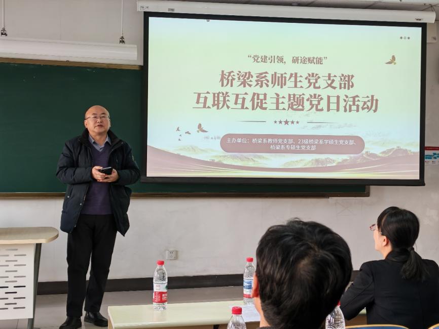 活动伊始,桥梁系主任安明喆向师生介绍了活动背景目标,他表示,本次活动旨在搭建师生交流平台,推动党建与学业深度融合通过加强研究生全过程培养、密切导学互动,切实促进师生双方在学业发展与育人实效上的共同进步。